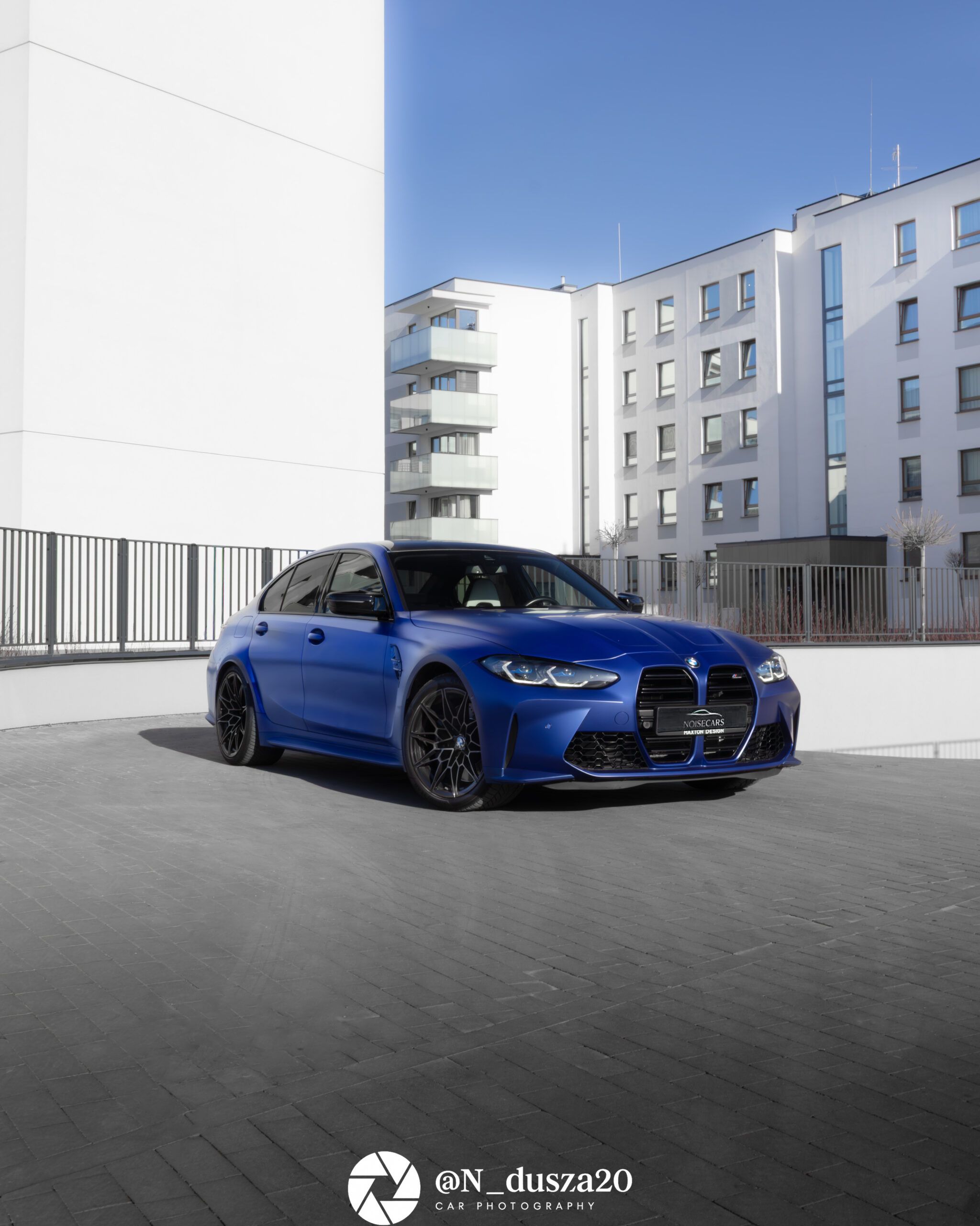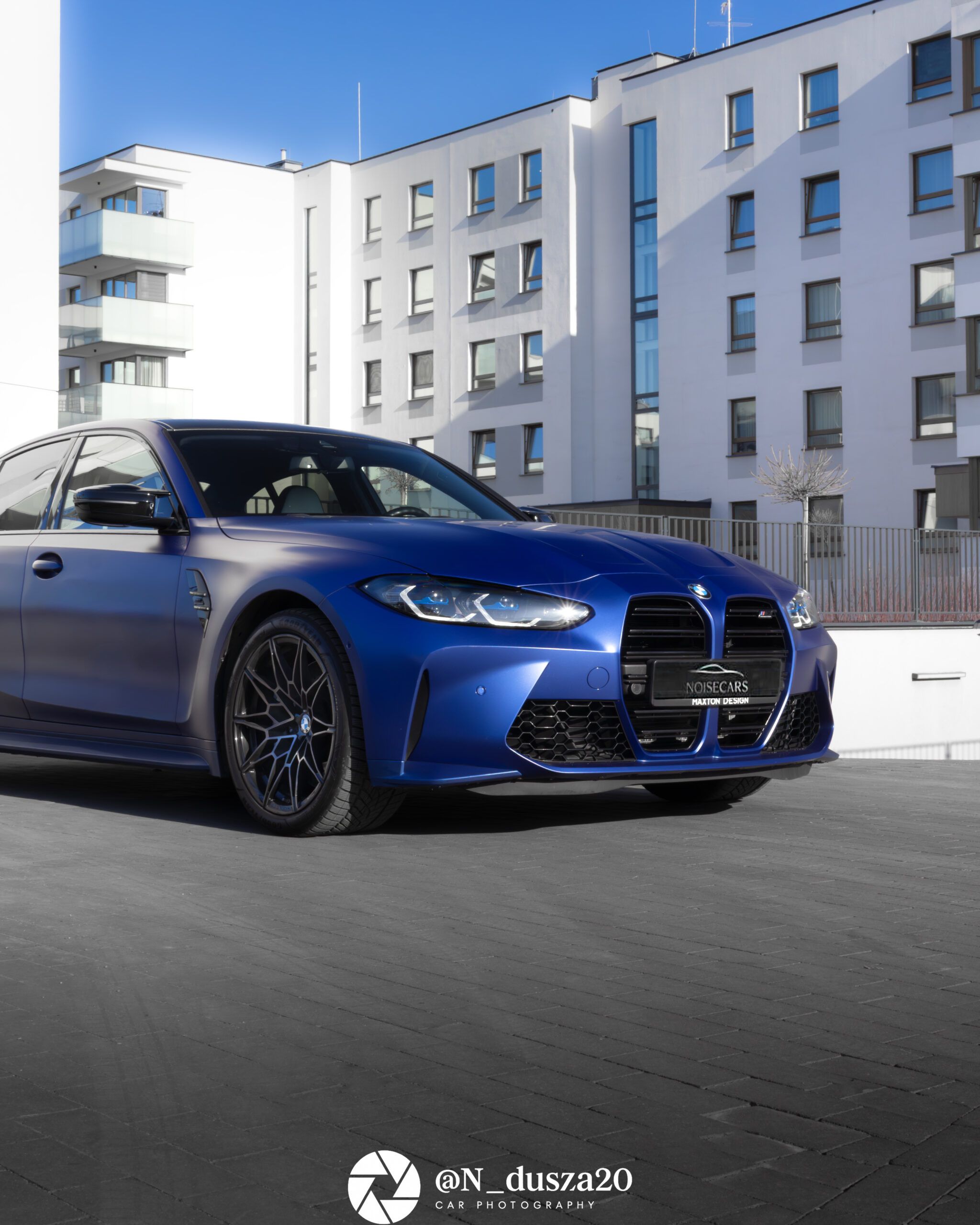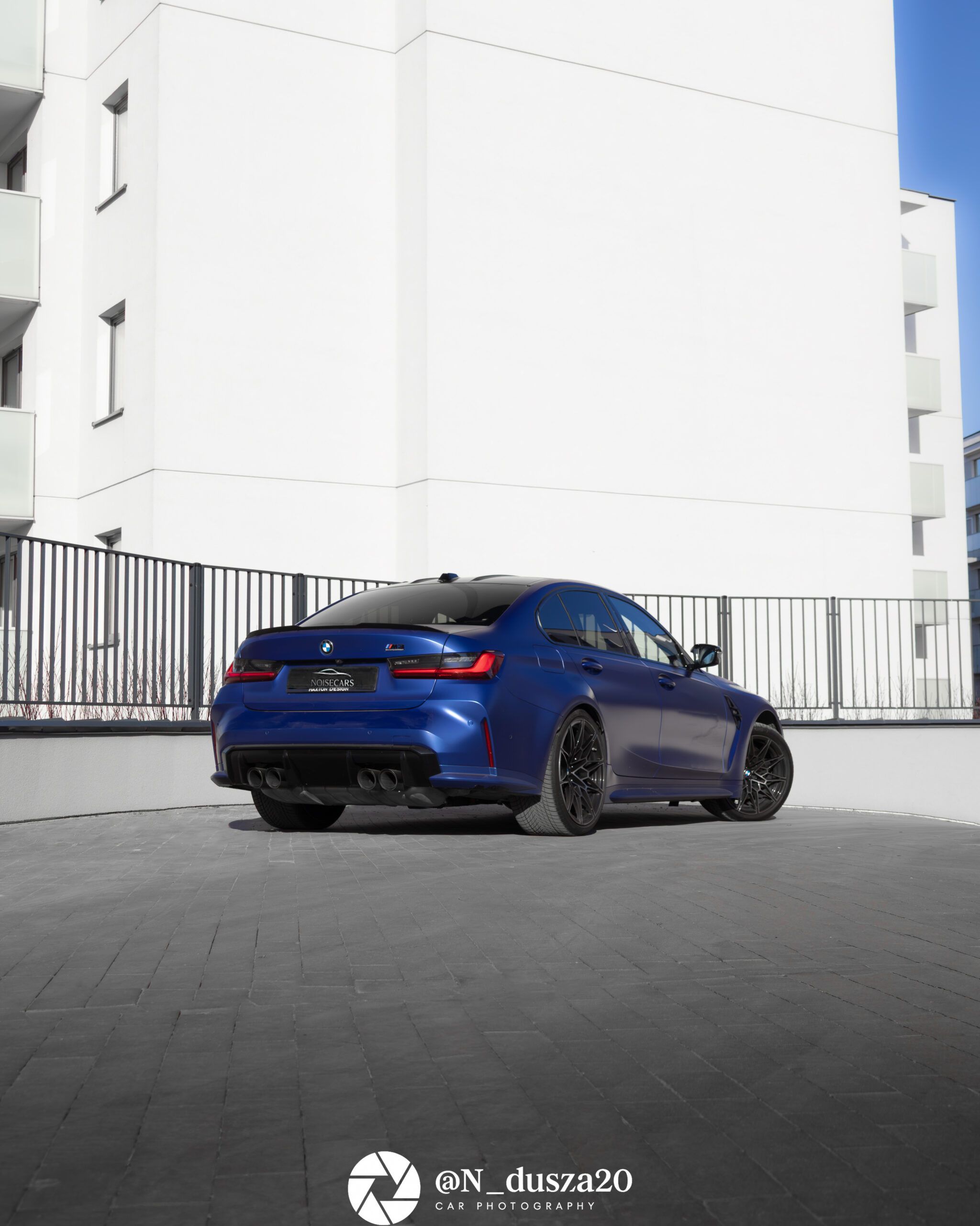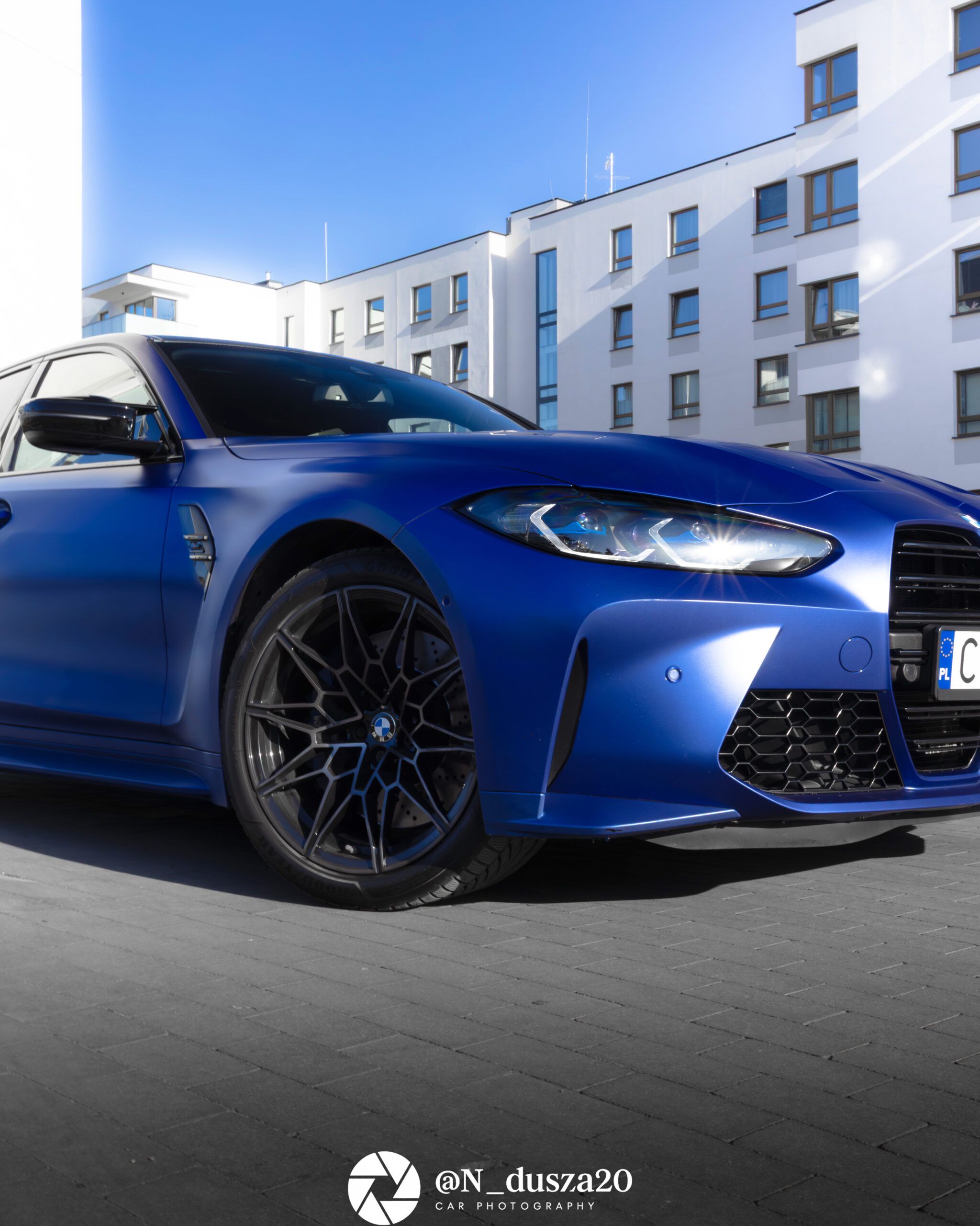 BMW M3 Competition to jedna z tych maszyn, które od pierwszego spojrzenia jasno pokazują swój charakter. Agresywna linia nadwozia, szerokie nadkola i wyraźnie zarysowany front sprawiają, że auto wygląda jak gotowe do startu jeszcze zanim ruszy z miejsca. Intensywny lakier tylko podkreśla muskularną sylwetkę i sportowe proporcje typowe dla modeli z rodziny M.