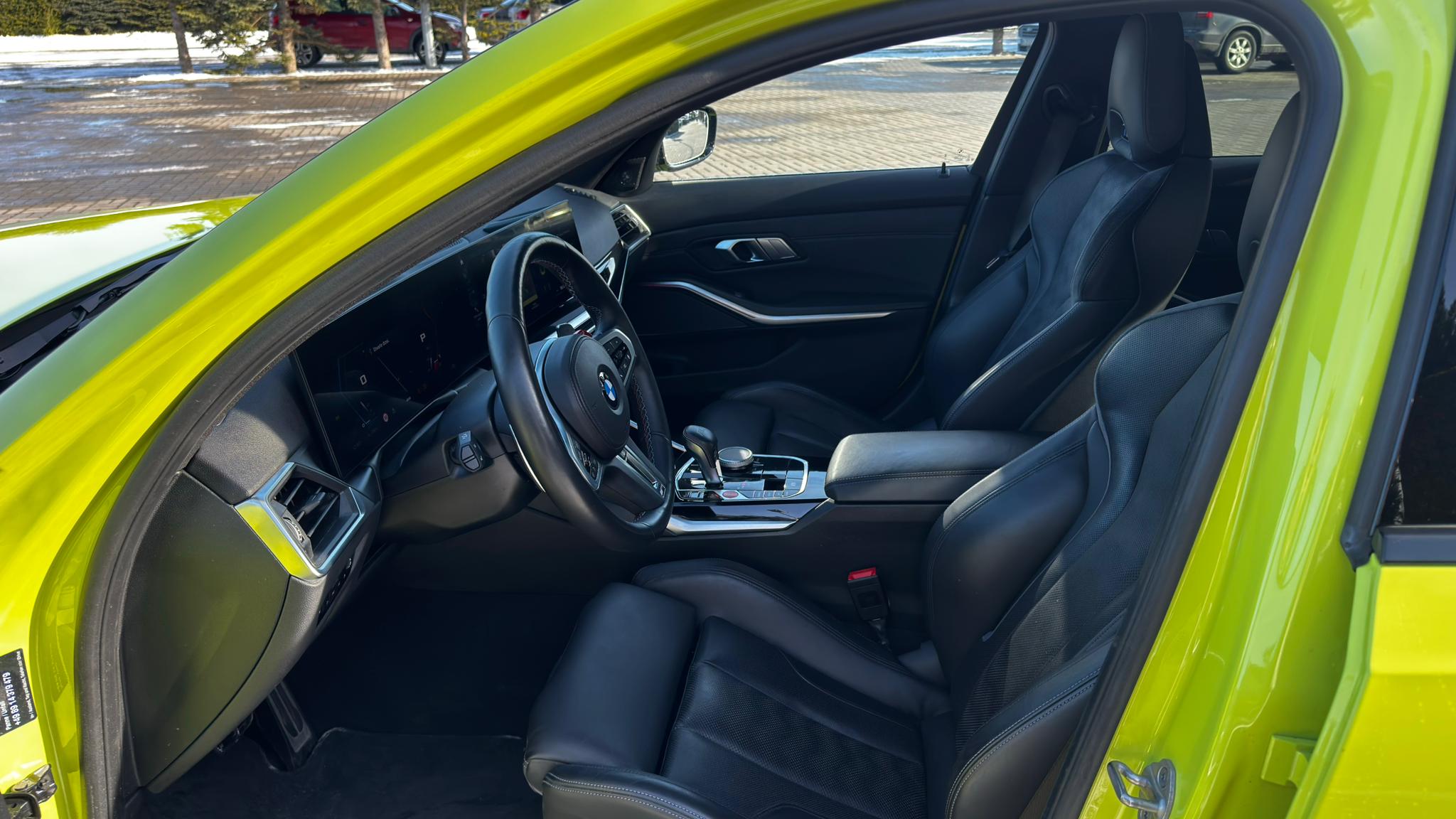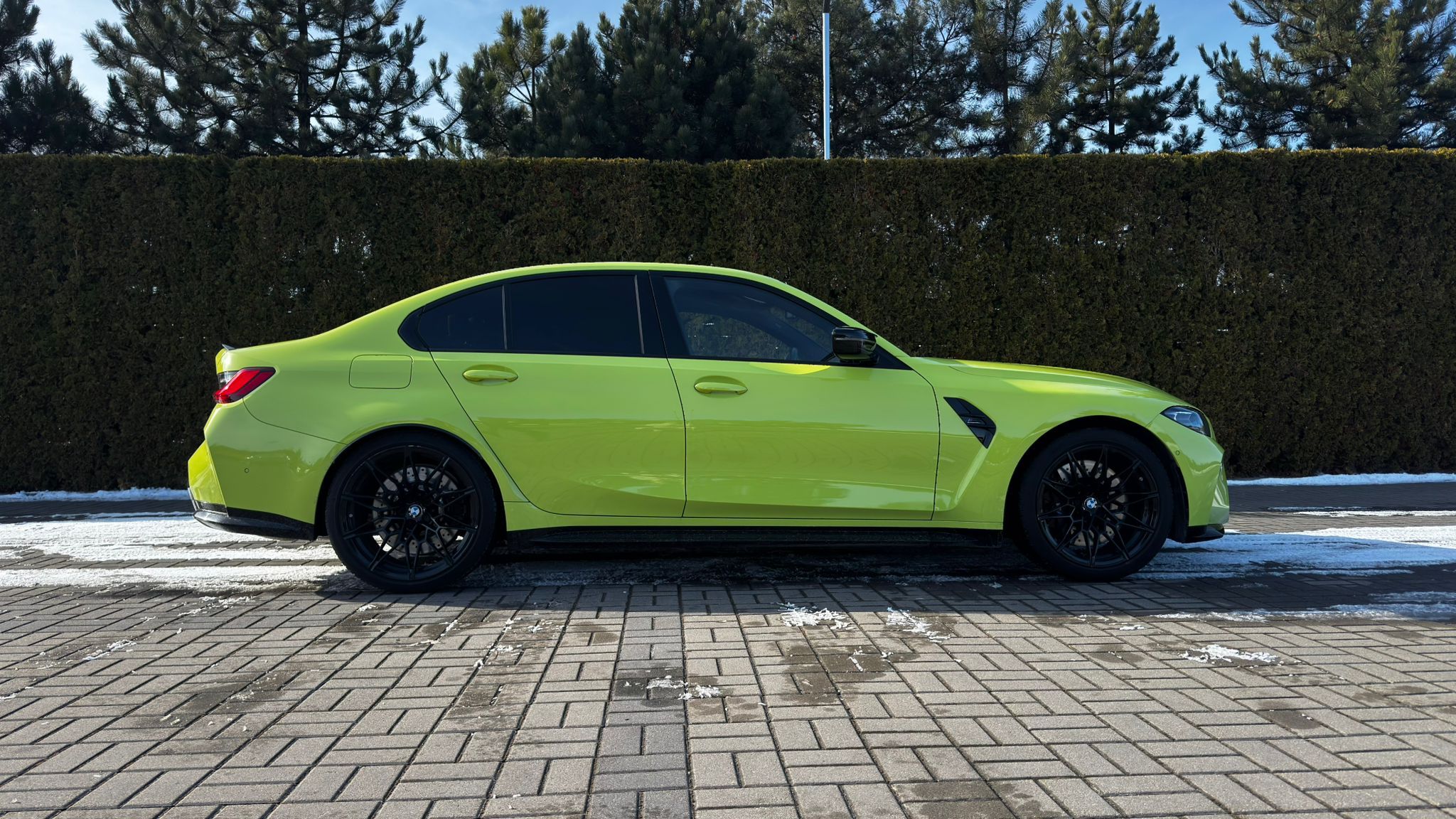 BMW M3 Competition to bezkompromisowe sportowe M w najbardziej wyrazistym wydaniu. Intensywny, limonkowy lakier podkreśla muskularną sylwetkę, poszerzone nadkola i agresywny front, który od pierwszego spojrzenia komunikuje jedno — tu rządzi moc i charakter.