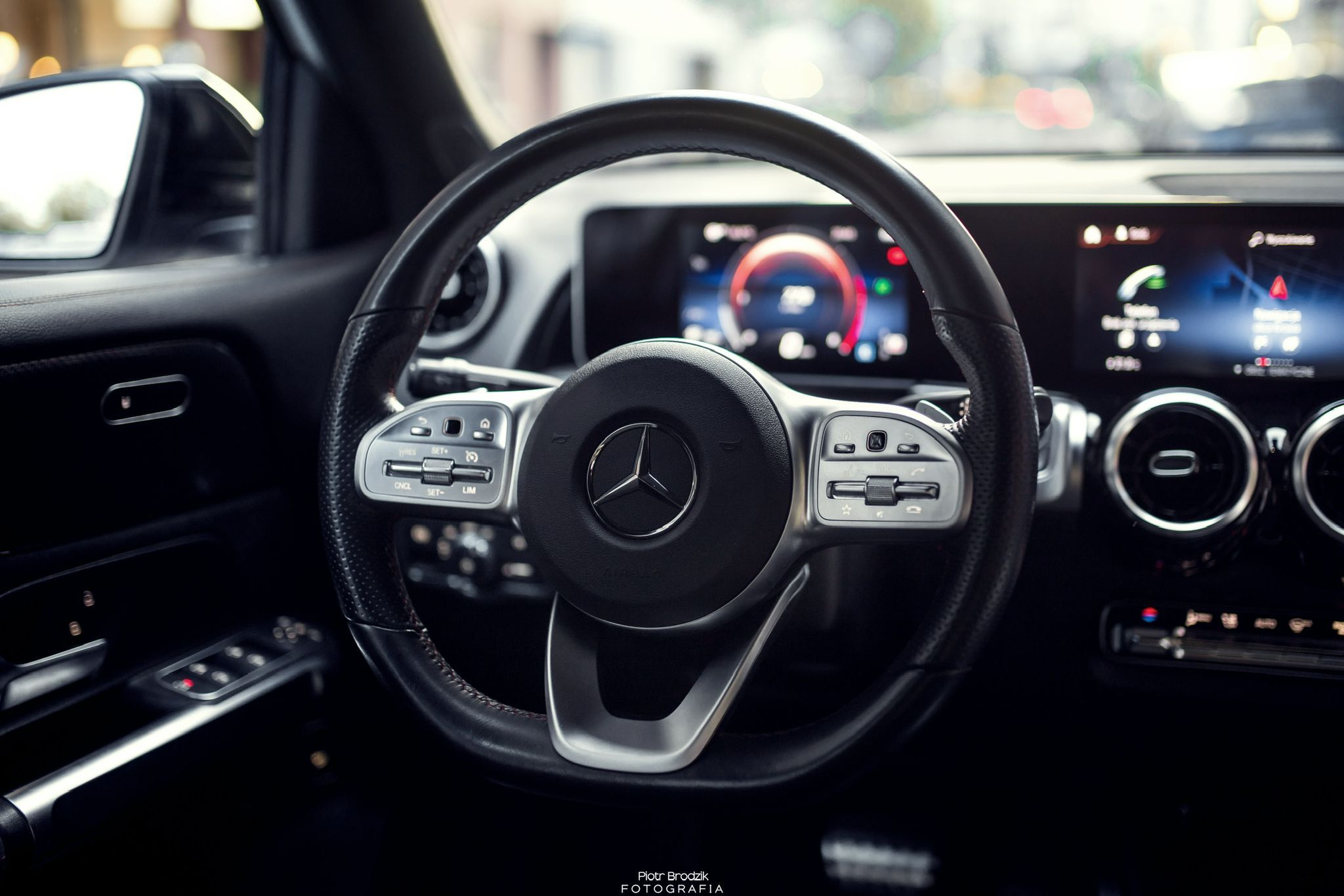 Wnętrze zaprojektowane z dbałością o każdy detal – czarna podsufitka, kubełkowe fotele wykończone skórą i alcantarą z czerwonymi przeszyciami, sportowa kierownica AMG i w pełni cyfrowy kokpit tworzą przestrzeń, w której wszystko podporządkowane jest kierowcy. To kabina, w której komfort spotyka się z technologią – z charakterystycznym dla marki Mercedes-Benz poczuciem klasy i spójności.